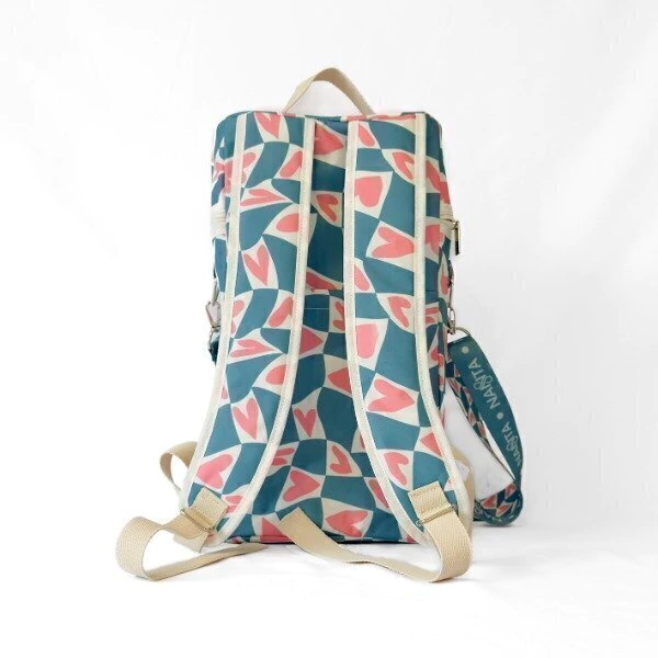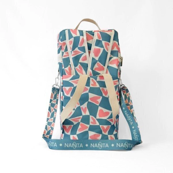 Cuenta con dos tiras reforzadas que podés colgarte y una tira corta en la tapa para opciones de transporte más cómodas. En la parte trasera tiene un bolsillo extra para guardar llaves, celular, dinero y otros objetos esenciales.