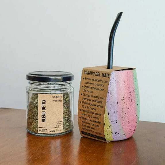 - Mate de madera Pintado con Bombilla (diseño a elección)