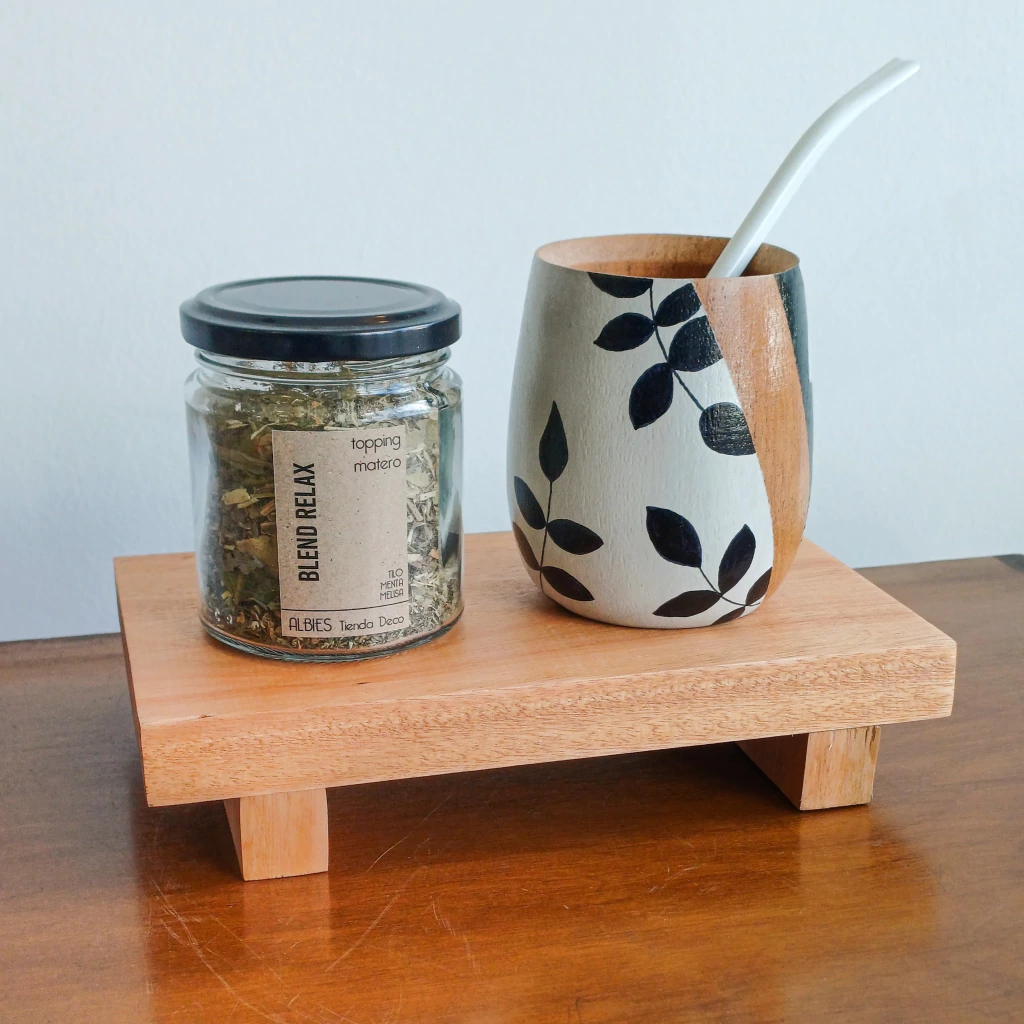 - Mate de madera Pintado con Bombilla (diseño a elección)