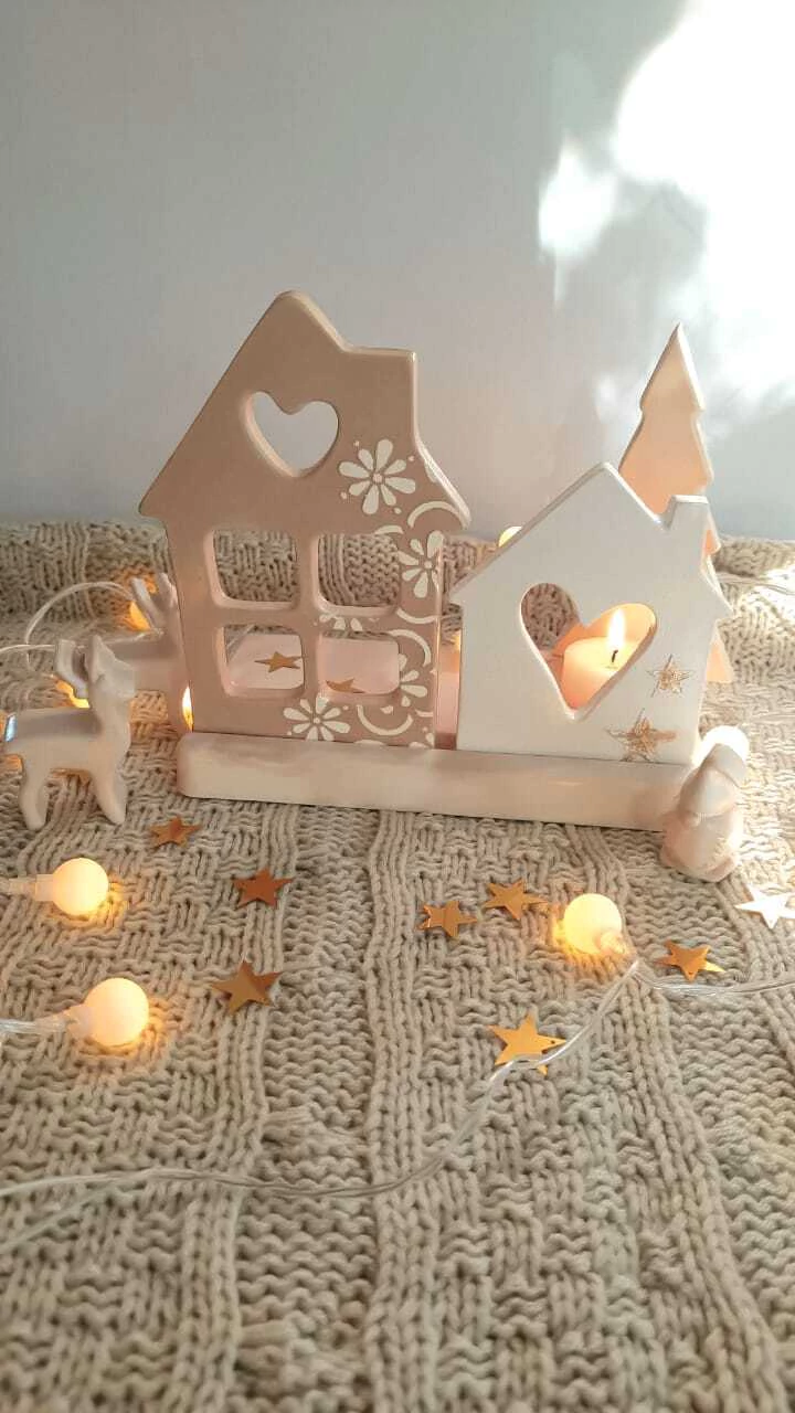 👉 Vas a realizar dos casitas decorativas con base efecto mármol y detalles con foil y pasta relieve, además de miniaturas para completar tu composición.